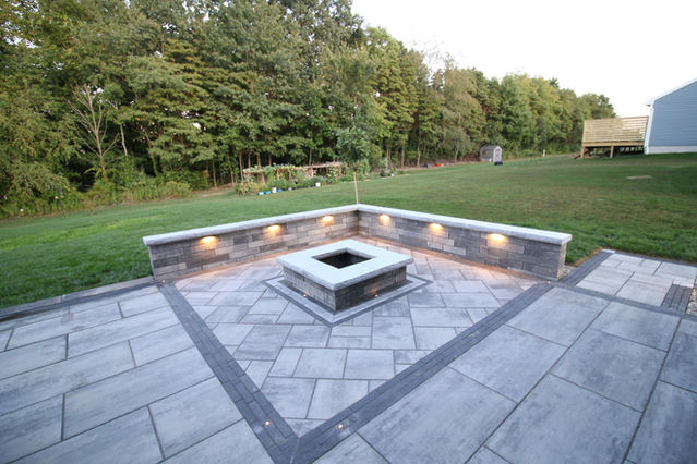 On this project in Barberton, we started with a black slate to design this beautiful outdoor space. This one-of-a-kind project is complete with Unilock pavers, Timber Tech decking, and Bold Night lighting. The two tone Grey design of this project allowed us to showcase the materials in a variety of patterns and uses to create a modern retreat for this client!
